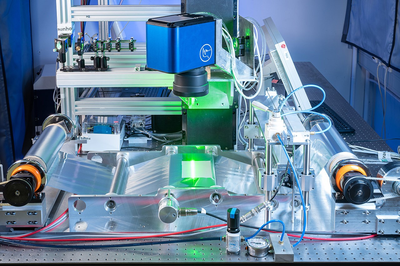 Unser Ziel ist es, die Kosten für eine zu bearbeitende Fläche so gering wie möglich zu halten. Aktuell haben wir am Fraunhofer IWS mit der Laserbearbeitung Prozessraten bis zu 0,9 Quadratmeter pro Minute erreicht. An der TU Dresden, mit der wir zusammen am DLIP-Verfahren forschen, waren durch den Einsatz von Polygonscannern sogar 1,6 Quadratmeter pro Minute möglich. Noch höhere Prozessraten werden mit einer Rolle-zu-Rolle-Anlage erzielt. Dort wird nicht direkt die Folie strukturiert, sondern ein Stempel, der über eine Rolle die Struktur auf eine Folie abformt. Hier lassen sich Prozessraten von bis zu 10 Quadratmetern pro Minute erzeugen.